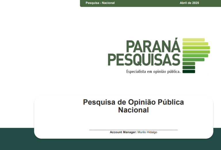 O levantamento do Instituto Paraná Pesquisas foi realizado com eleitores de todo o Brasil, entre os dias 16 e 20 de abril de 2025.