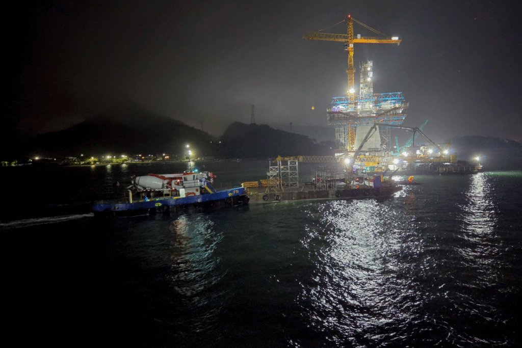 Há atividades realizadas no período noturno que são mais específicas, conforme o projeto toma forma. Nesse momento, por exemplo, os trabalhos estão na execução dos balanços sucessivos. “Durante a noite é feito todo o trabalho de armação das ferragens. Durante o dia tem muita movimentação de carga, de materiais sendo transportados. Então, além dos serviços específicos de perfuração e na parte estaiada, à noite é feito também esse trabalho de preparar tudo para que no dia seguinte a produtividade seja maior”, complementa.